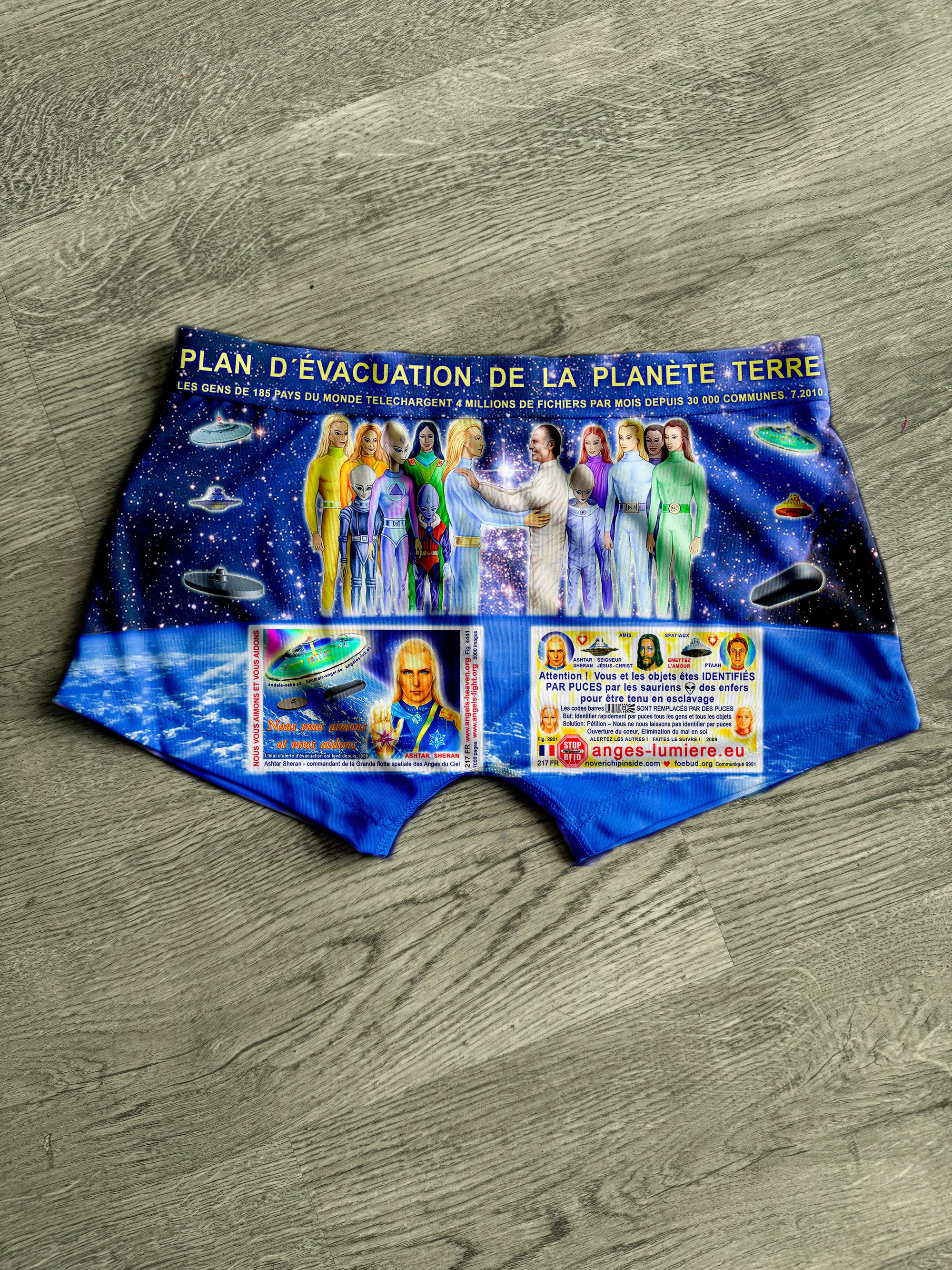 The boxer shorts for awakened souls, for cosmic people, with the Earth evacuation plan, just in case...